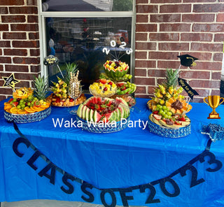 Celebrate your graduation with a beautiful fruit table 🍓🎓 Fresh fruit, delicious snacks, and a menu personalized for your special day